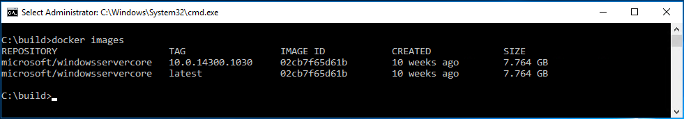 microsoft/windowsservercore latest 590c0c2590e4 3 weeks ago 10.1 GB