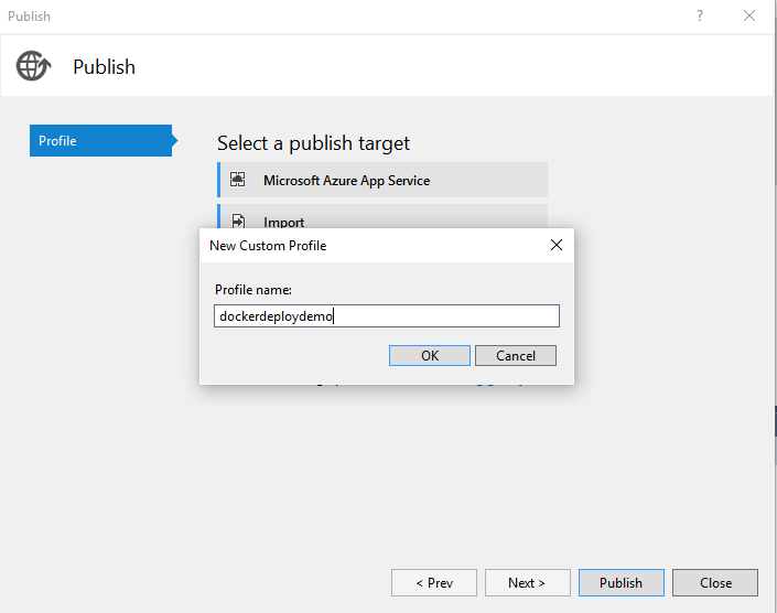 then you give the profile a name, in my case dockerdeploydemo