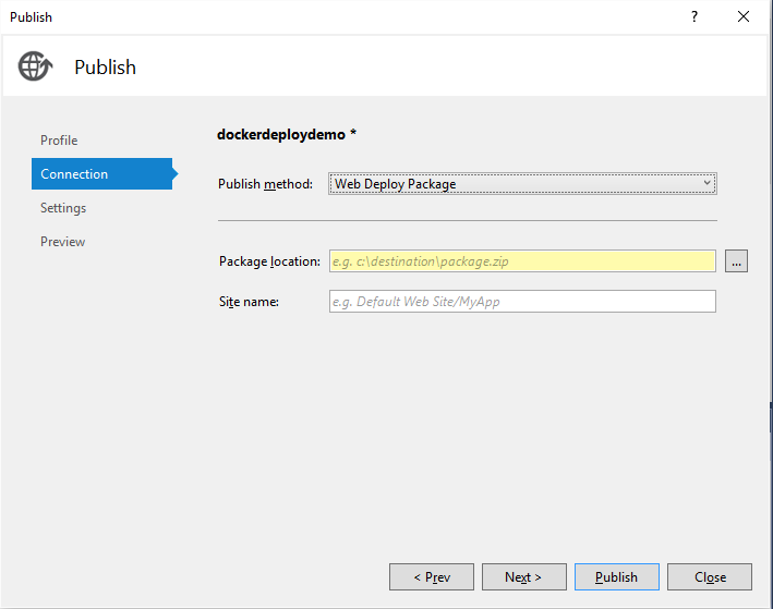 Now that we have the webdeploy package and the accompanying deployment artifacts, we can again create a docker file that will then upload the package to the container and install the website in the container. This will then leave you with a complete docker image that runs your website.