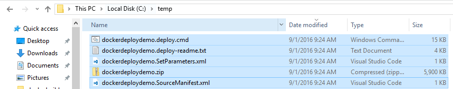 next, click publish and you will find the resulting deployment package and accompanying deployment files in the c:\temp folder