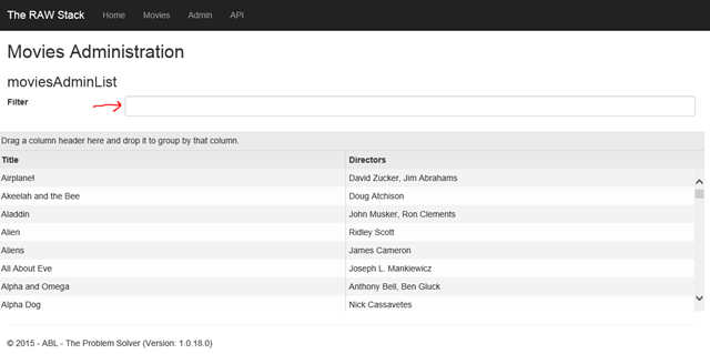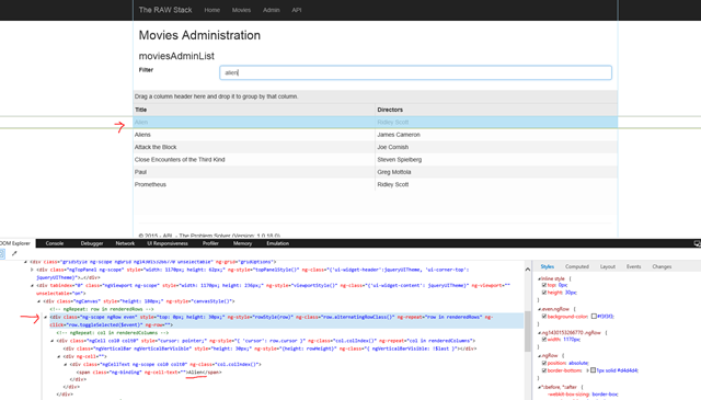 Goto the site http://rawstack.azurewebsites.net/, Click on the Admin link, enter a movie in the filter box, Click on one row and then read out the audience score value and assert on the value.
